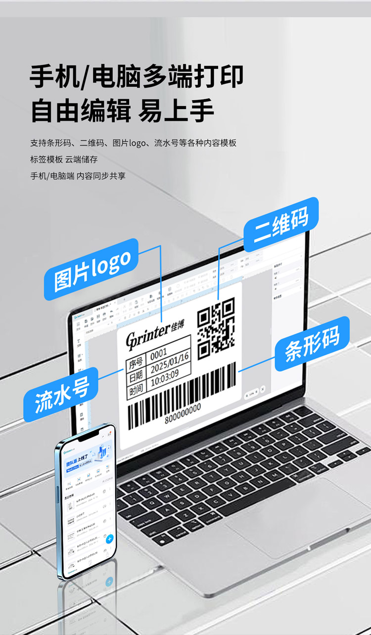 為了滿足不同行業(yè)的標(biāo)簽打印需求,佳博編輯軟件配置了豐富的標(biāo)簽?zāi)0鍘?kù)。這些模板涵蓋了餐飲、零售、物流、醫(yī)療等多個(gè)領(lǐng)域,用戶只需一鍵即可套用,極大地節(jié)省了時(shí)間和精力。同時(shí),打印機(jī)還支持手機(jī)/電腦多端打印,用戶可以在任何設(shè)備上自由編輯標(biāo)簽內(nèi)容,實(shí)現(xiàn)云端存儲(chǔ)和同步共享,讓標(biāo)簽打印更加便捷高效。