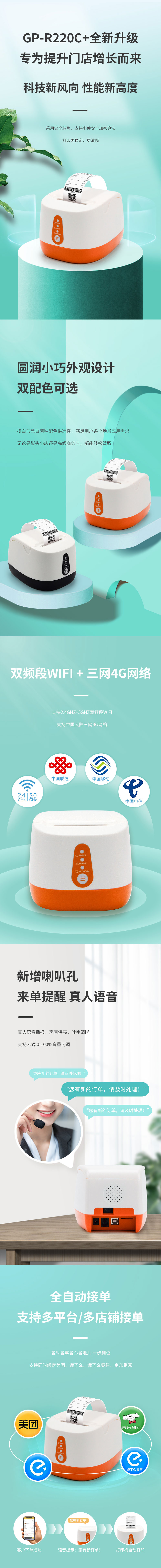 佳博全新升級的GP-R220C+賦能智能外賣解決方案,基于互聯(lián)網(wǎng)云技術(shù)實現(xiàn)遠程打印,為餐飲商戶提高訂單處理效率。顧客從到店排隊、點餐到結(jié)賬離開,或是外賣點餐送餐整個服務(wù)閉環(huán)流程,商家可實現(xiàn)全自動接單打印。
